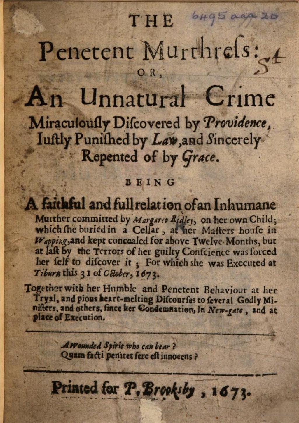 An Early Modern Pamphlet by Margaret Ridley, published in 1643, accessed via Google Books.