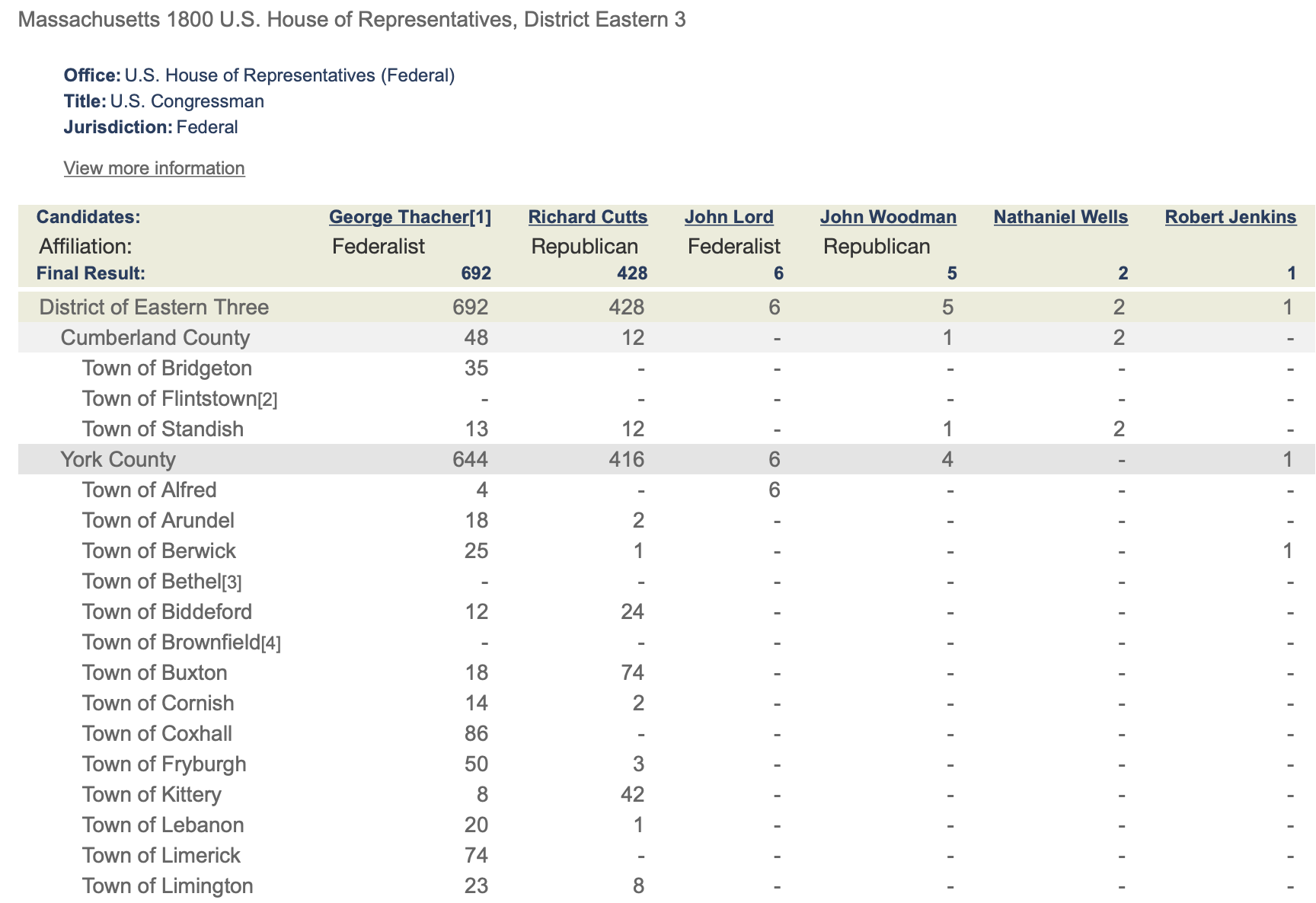 Anexample of a Congressional electionin A New Nation Votes. A Federalist candidate won out over a Democractic-Republican competitor in a Massachusetts congressional district which is now a part of Maine.