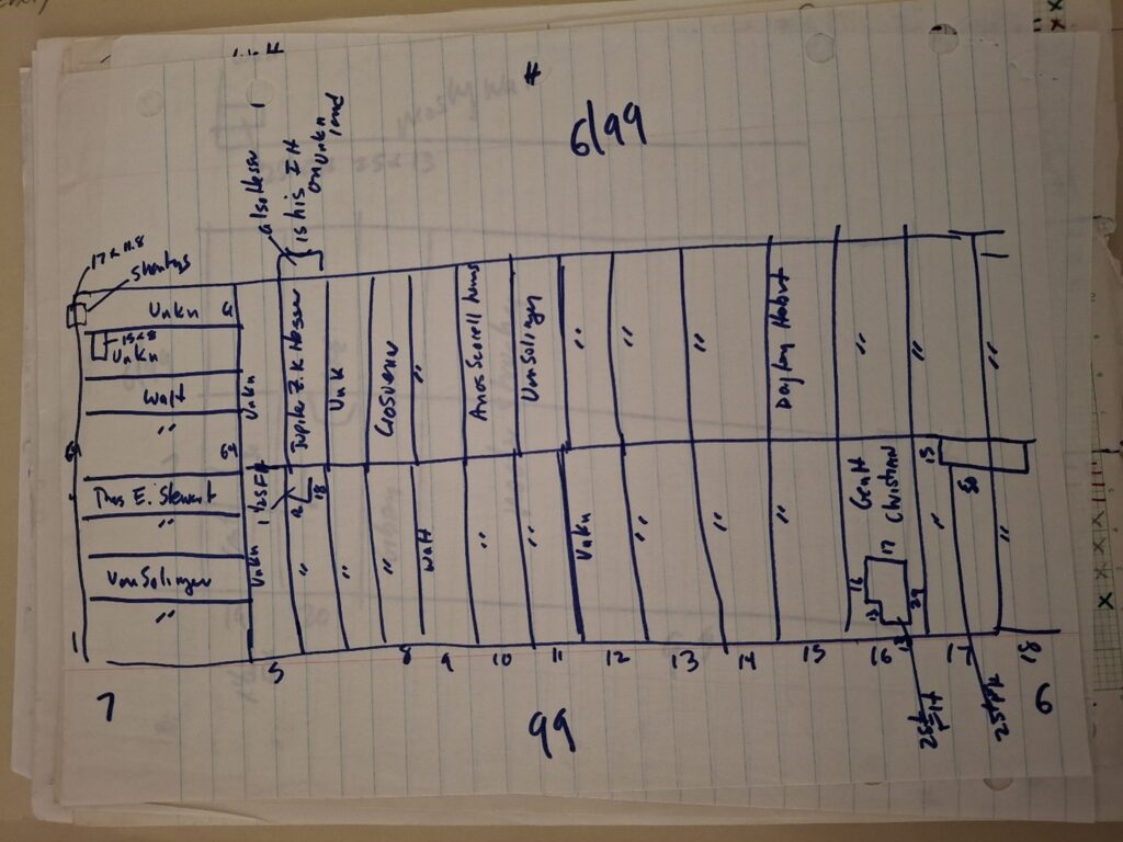 As Salwen wrote those words, Roy Rosenzweig and Elizabeth Blackmar were answering his call. As early as 1987, Rosenzweig had produced a list of 323 residents in the village. They were a mix of laborers, shop owners, and farmers. The information he collated included their full name, number of family members, ID number, age, years lived in the city, employment, birthplace, and the number of lots, shanties, framehouses, stables, sheds, and piggeries they owned. Most of the sources he pulled these names from were baptismal records.[14] He also drew rudimentary plot maps of the village. In their 1992 book, The Park and the People, Rosenzweig and Blackmar included around thirty pages on Seneca Village, using it as the example of removal via eminent domain in creating Central Park.