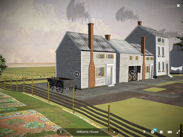 Figure 6: Screenshot of Envisioning Seneca Village, Andrew Williams house. Williams was the first person to buy land in Seneca Village. He paid $125 for three plots of land.