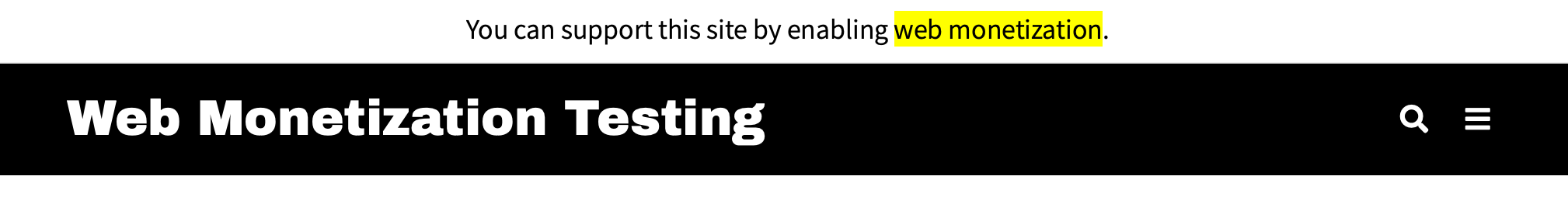 For example, an institution could add an unobtrusive banner at the top of the page, requesting that users support the site by enabling web monetization and providing a link with an explanation. Users can sign up for a Coil account to enable streaming payments.