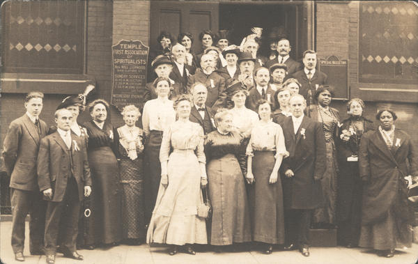 A group portrait of Spiritualists in Philadelphia. [Keith John Frank, photographer; “Group portrait of members of the First Association of Spiritualists, Philadelphia,” 1917, The Library Company of Philadelphia, https://digital.librarycompany.org/islandora/object/digitool%3A128311.]