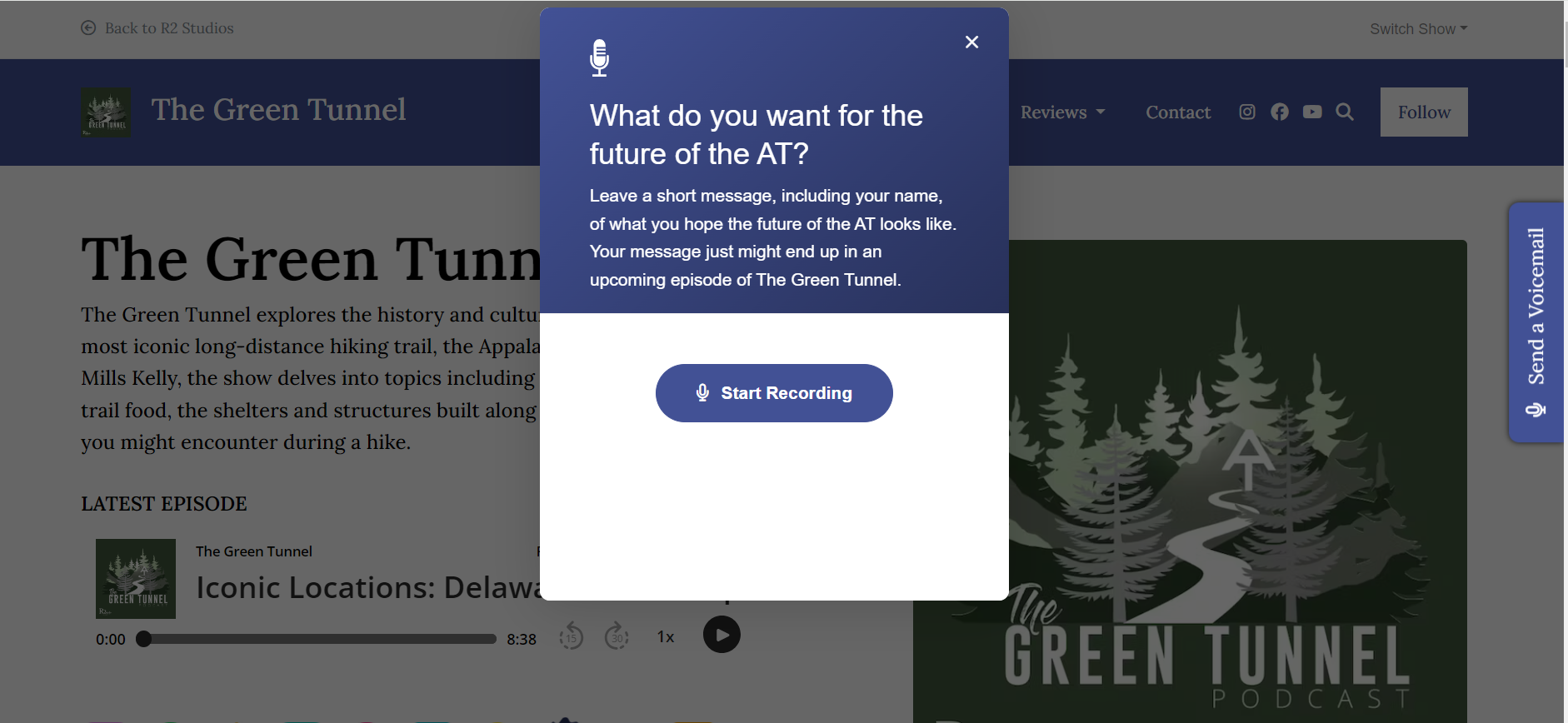 You can help us with our final episode. It will be about the future of the AT, not its past, and we’d like to hear from you about what you think about the future of this remarkable trail. We’ve set up a voicemail link on over on r2studios.org where you can leave us your thoughts on the future of the trail. To fit as many voicemails as possible into our final episode, we’re asking that you try to limit your message to about 30 seconds.