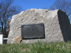 According to a commemorative plaque at Alexandria National Cemetery (ANC), four men had “lost their lives April 24, 1865 while in pursuit of Booth the assassin of our beloved President Abraham Lincoln.” (RRCHNM 2018)[/caption]