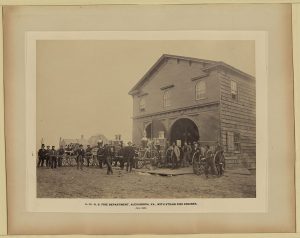 This photograph shows members of the U.S. Steam Fire Brigade in Alexandria in July 1863, about two years before the disaster. While none of the men are identified, it is entirely possible that Carroll, Gosnell, Huntington, and/or Farley are pictured. (Library of Congress)[/caption]